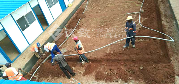 湖南路橋建設(shè)集團攜手我們湖南誠致,來到美麗的非洲大地,在馬薩卡鎮(zhèn)的維多利亞湖旁,建造了3400平方的標準K式板房做為項目部駐地,我們湖南誠致派出了兩位技術(shù)骨干,與當?shù)厝罕娨黄穑餐瑏泶蛟煳覀兒险\致生產(chǎn)的標準K式活動板房,目前已順利進展中。