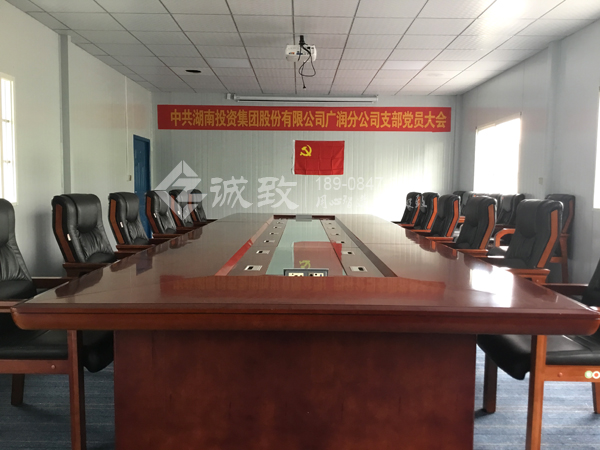 湖南投資集團股份有限公司為湖南省第一家上市公司,以路橋收費、酒店經營、商業地產開發為主營,我們湖南誠致承建該公司長沙芙蓉北路金霞開發區項目部臨建駐地建設,總共有兩棟豪華四坡活動板房(其中有1棟超大型U型豪華四坡活動板房,作為主辦公樓,單體面積超過1500平方),一個保安崗亭,總共建筑面積為1820平方。整個項目部布局設計簡潔大氣,辦公樓直接連接餐廳與娛樂室,避免了日曬雨淋,辦公生活都非常舒適愜意。