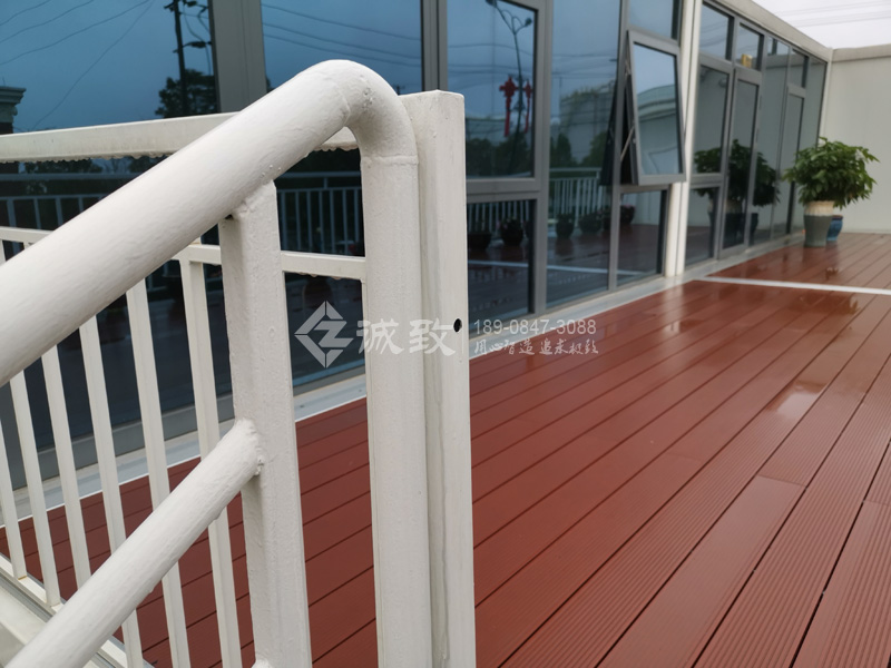 觀景平臺采用的為新型環(huán)保的橘黃色木塑地板,具有防潮、防滑還防火的特性,再配上幾盆小花、小草,有點清新脫俗的感覺。