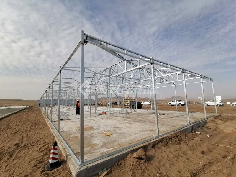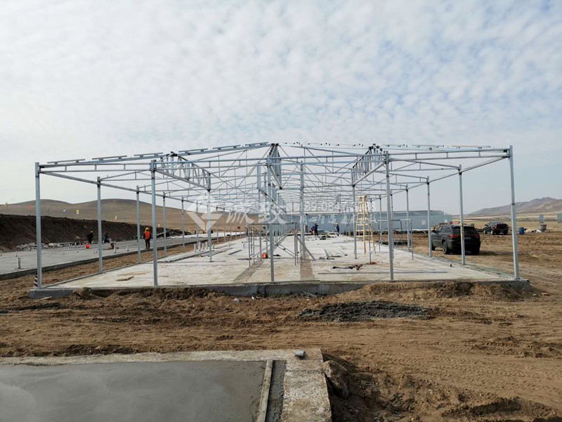 工程介紹:巴林右旗位于內(nèi)蒙古自治區(qū)赤峰市北部,是科爾沁草原的重要組成部分。是一個以牧業(yè)為主的半農(nóng)半牧旗。在大查公路工程DCSG-1標總包部二部分項目部工地上,呼呼的風卷起沙土飛揚,日晝溫差也比較大,湖南誠致的家人們在這邊搭建活動板房的工程量達3700平方米,房屋類型主要以豪華雙坡單層和豪華四坡單層為主,板房層高最低2.9米,而雙層羽毛球管高達6.16米,最小跨度3.01米,最大跨度15.56米,所以在設(shè)計活動板房的時候,必須考慮外部環(huán)境因素帶來的影響,鋼結(jié)構(gòu)必須要達到受力抗風等承載要求!