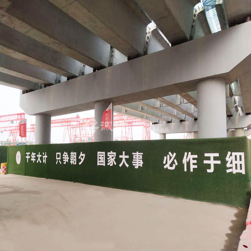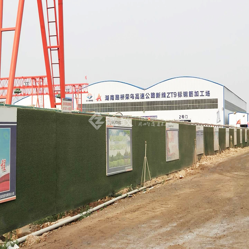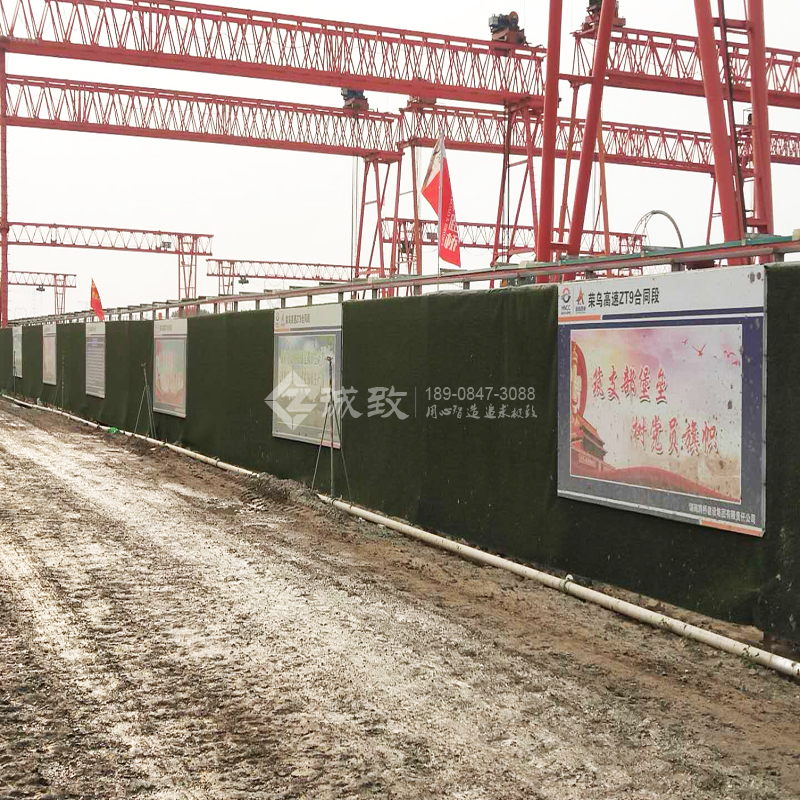 榮烏ZT9標(biāo)項(xiàng)目部施工場(chǎng)地,使用了較環(huán)保,較綠色的圍擋,那便是仿草皮圍擋。仿草坪使用年限從4年到10年以上,和用在操場(chǎng)上的類似。