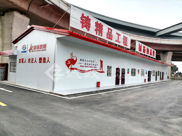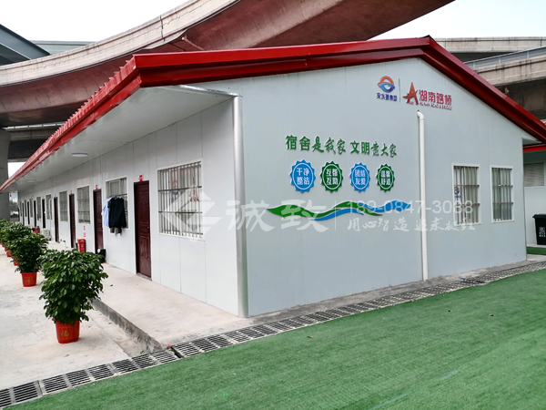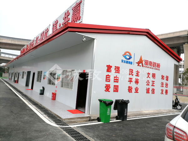 我們湖南誠致承建該項目活動板房,總共建有六棟板房,其中一棟豪華雙層四坡活動板房做為主辦公樓,其余為豪華雙坡單層活動板房,總建筑面積為2300平方,包含有辦公室、宿舍、實驗室、廚房餐廳、廁所等,滿足項目部生產生活需要。