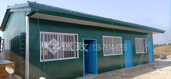 本工程為新余仙女湖楊梅園一豪華雙坡活動板房,活動板房建于山坡上,做了活動板房防臺風措施;項目面積不是很大,83平方米,用時兩天半搭建完成。