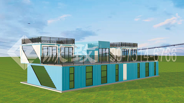 著眼于環保與可持續開發的新趨勢,將科技環保概念貫徹始終。湖南誠致用集裝箱來搭建一座特別的接待中心,我們可以看到,這次集裝箱設計的接待中心,外觀設計非常有設計感,大面積的藍色加上米白色來穿插,點綴出新的活力,既現代又時髦。