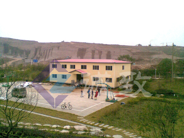 工程介紹:本工程由一棟雙層樓的豪華四坡房,分上下兩層,一樓為會議室、接待室、指揮部、辦公室、資料室等,二樓主要為宿舍,總共18間房間,功能齊全,整體造型簡潔大方。