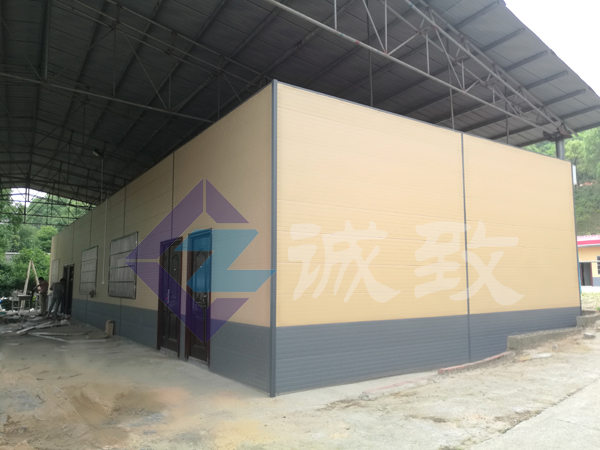 該工程為兩棟單層豪華帶金屬雕花板集成房屋,建筑面積為620平方,主要為學生上課和食堂使用,外墻掛有金屬雕花板,使得整體形象高端、大氣,同時也起到了保溫作用,建成后,深得老師和學生們的喜歡。