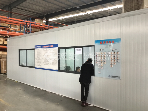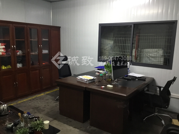 本工程為一棟長9.6米,寬12.6米,高2.8米的平頂室內(nèi)活動板房,由于客戶為物流公司,消防要求必須防火,客戶找到我們,我們湖南誠致為客戶量身打造了這一棟全防火活動房,滿足了客戶辦公急需。